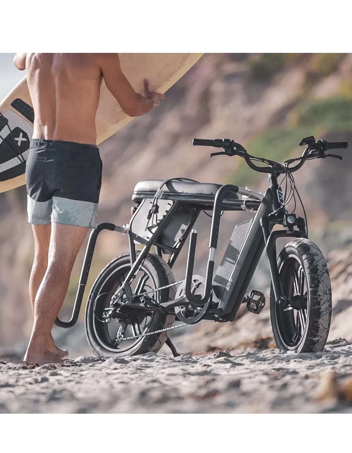 Not everyone gets to live a short bike ride from their break. If you have to cover some more ground, or just love zipping around on your moped or scooter, our Moped Racks are for you. We’ve adapted our same quick release bars with some unique mounting hardware specially adapted to work with tubular cargo racks common to moped and scooters. This also makes them an ideal match for moped style electric bikes including RadRunners, Scramblers, and the Super 73.