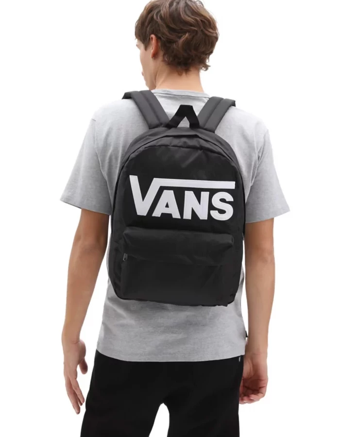 The Old Skool III Backpack is a 100% polyester backpack featuring one large main compartment with a laptop sleeve (fits most 38 cm laptops), a front zip pocket with an organizer for quick access, and straight-cut padded shoulder straps. Measuring 41.9 L x 32.4 W x 12.1 D cm, it has a 22-liter capacity.