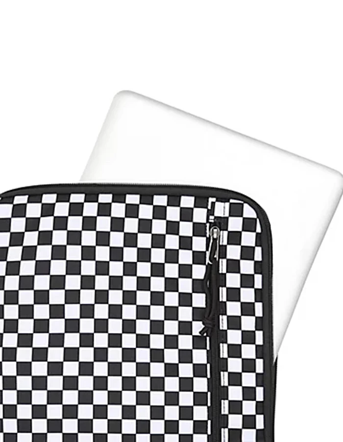 The Vans Padded Laptop Sleeve has an insulated interior for keeping laptops safe, an exterior zipper pocket and an adjustable shoulder strap. It measures 21 h x 26.7 w x 17.8 d cm and has a 10-litre capacity. It also features an allover checkerboard pattern.