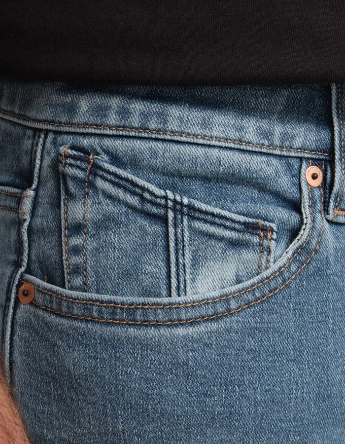 - Modern fit, regular rise mens jeans